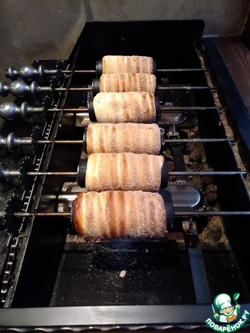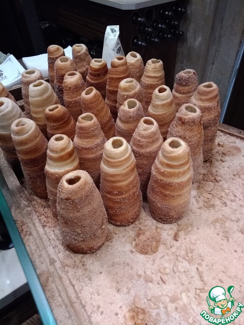 А как выпечка это представляет из себя сдобное тесто, накрученное на "скалку" и выпеченное на углях. Скалку крутят над углями как веретено или шашлык) Обсыпка из сахара и орехов. Божественный запах теплой выпечки, корицы и сахара витает над старым городом.