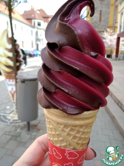 Мороженое как мороженое. Интересно, что оно двухцветное. Может и у нас такого навалом, но я сто лет нигде не была. Поэтому такое мороженое меня удивило.