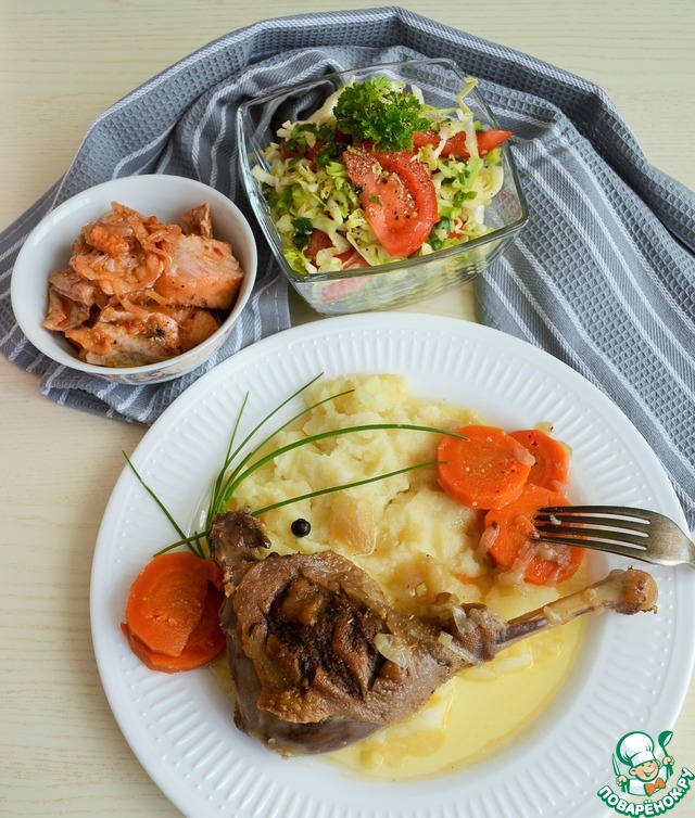 все таки гусиное мясо жестче. За 5 минут до готовности
