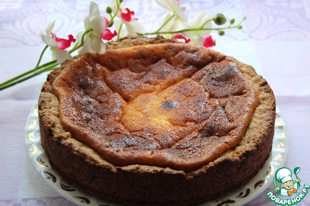 Результат очень вкусный. Но были трудности с приготовлением. Пришлось потрудиться, чтобы собрать крошки в единый ком. О раскатывании даже и не мечтала, только ручками и только уже в форме. Да ладно, справилась. Делала все точно по рецепту, высокие бортики, начинка не доставала до края. Но во время выпекания сами бортики опустились, хорошо, что начинка к тому времени уже схватилась и не вытекла. У меня такой загорелый, потому что все хотелось, чтобы начинка не булькала, а была плотной. Когда вынула из духовки, то вся красота опустилась и сморщилась. Но несмотря на это, получилось очень вкусно.