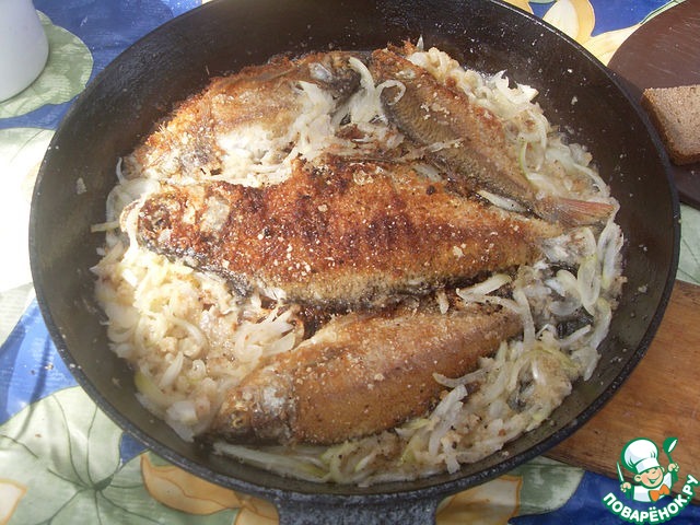 Рыба жареная, да с лучком... ммм...