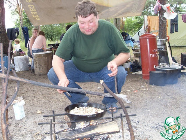 Пока ставится лагерь, кое-кто уже успел сбегать за грибами... Это наш грибник Димон!!! Уже и собрал и нажарил... Сейчас угощать будет...