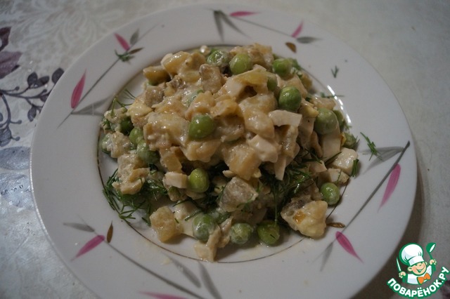 Вкусный салатик, но горошек мне показался лишним. Салат хорош в свежем виде, когда постоит - теряет свою привлекательность...
