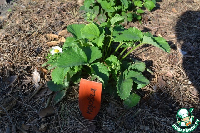 И ещё, я хочу дать такой совет, может кому-нибудь он пригодится: если вы хотите развести клубнику разных сортов, то надо будет обязательно пометить, где какой сорт, чтобы потом не запутаться. Так вот, как я решила эту проблему: в хозяйственном магазине я купила деревянные лопаточки для кухни по 10 рублей. Покрасила их акриловыми красками в 2 слоя, на каждой написала название сорта маркером и покрыла акриловым лаком. Просушила и воткнула в землю. Очень удобно, не дорого и симпатично получилось.