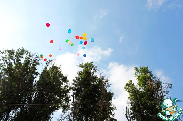 : я опасалась, чтобы шары, летя в небо, не зацепились за деревья, но мои опасения не были тщетными. Ветерок стал их уносить прямо на кроны деревьев, но затем... преодолев препятствия, они все вместе полетели далеко-далеко, как и наши школьные годы