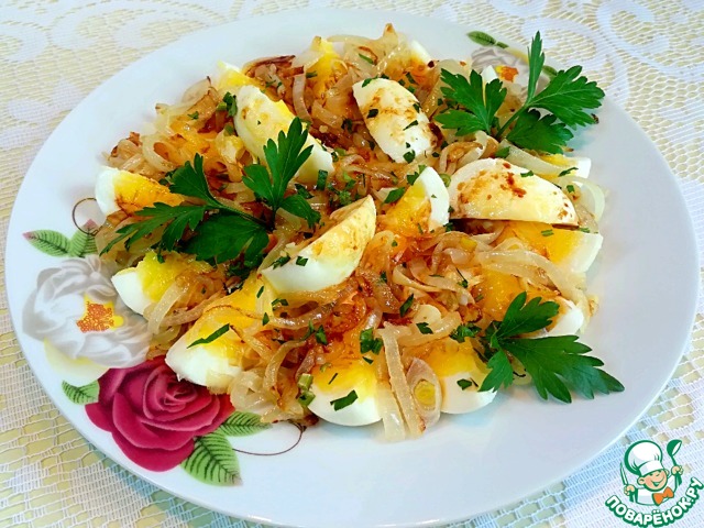 Замечательная, необычная, пикантная закуска! Яйца, обжаренный лучок и чудесный соус, вкусно! Мне очень понравилось!