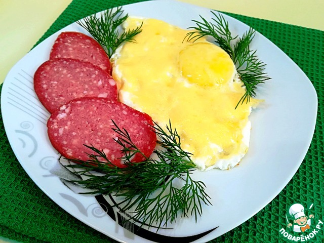 Интересная и необычная получилась яичница. Со сметанкой и сыром вкусно, нежно, сытно. Замечательный завтрак у нас был!