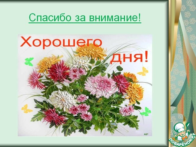 Всем огромное спасибо за внимание и вкусные рецепты! УГОЩАЙТЕСЬ!
