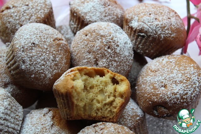 Вкусные кексы. Готовила без орехов. Всей семье очень понравились. Забыла добавить ванильный сахар, но и без него все отлично получилось. Пекла 25 минут.