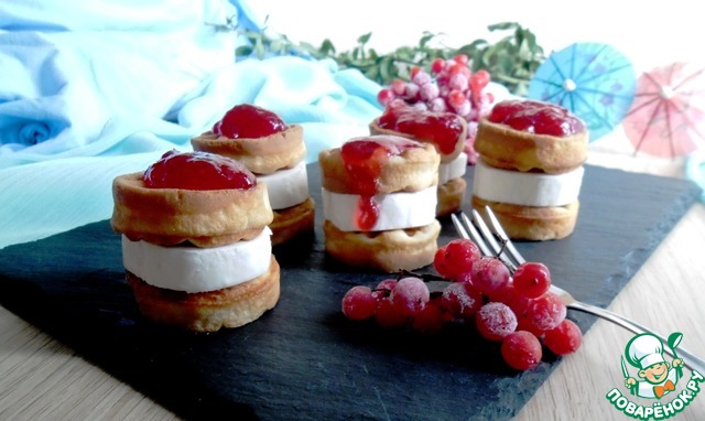 Венские мягкие вафли с пломбиром и джемом в "сугробах". Очень хотела успеть сделать снимок, пока мороженое застывшее, не потеряло форму!