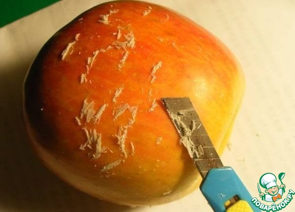 Самый простой на мой взгляд способ я увидела в одном видео: яблоки поливаются кипятком, а потом на них выдавливается лимонный сок и белый слой сходит без проблем. Просто ополоснуть - и готово!