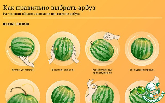 Арбуз — самый долгожданный и любимый всеми атрибут лета. Выбрать спелый и вкусный плод порой кажется просто невозможным делом. Но в этом прекрасном мире возможно всё! Сегодня повторяем правила, как выбрать самые спелые и вкусные плоды, не пробуя их сочную мякоть. А кому лень читать - изучаем картинки)