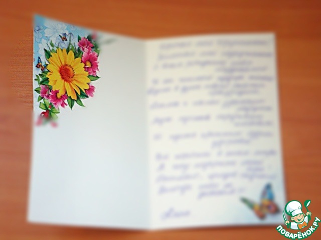 и внутри. С чудесным поздравлением в стихах, которые Аллуся сама сочинила для