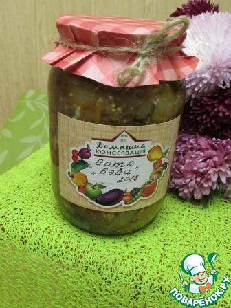 Салат привлек наличием разнообразных овощей, что очень необходимо в зимнюю пору. На подготовку овощей ушло больше времени чем на готовку самого соте, но это не проблема. У меня вышло 6 литровых баночек и ещё осталось немного на пробу.