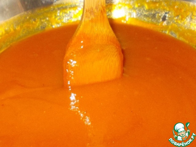 Перелила будущий мармелад в форму. На лопаточке очень красивый густой джем... Думаю: "Может, ну, его - мармелад этот?"... Но решила продолжить!
