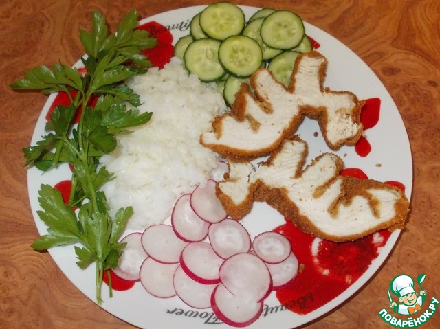 А так же куриные отбивные! Куда ж без них?) А вот таких я раньше не делала! Рекомендую! Рецепт от поваренка Беннито "отбивные из куриной грудки". Все сделала по рецепту, только вместо соли и перца добавила отличную смесь специй! Мега нежно и мега ароматно!