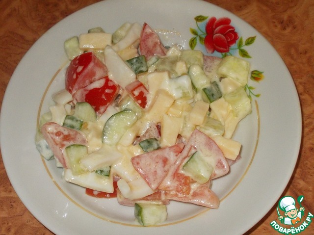 И снова кальмар, и от того же поваренка! "Салат с кальмарами и овощами". Отличный салат! Он просто не может быть не вкусным))