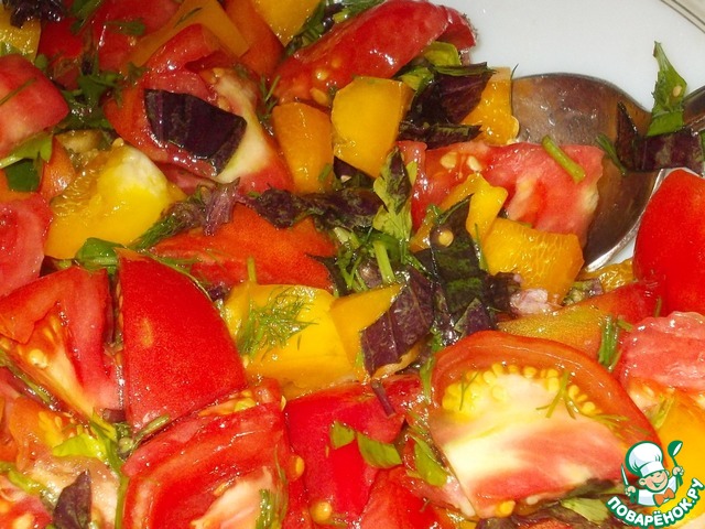 Все лето мы кушаем овощные салаты! Сочные, полезные, вкусные и красивые. Этот салат относится к рубрике полезные советы. "Подготовка помидоров для салата". Действительно салат не стекает долгое время после такой подготовки! А поделилась с нами этим советом поваренок VeVeTa Tuk