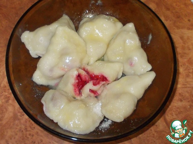 Следующие варенички в моем отчете от поваренка Mara2181 "Вареники"Летние" с черешней и ягодами"... У меня вареники с йоштой!