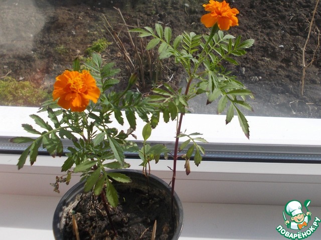 За окном зима, мороз и снег, а у меня бархатцы в доме)