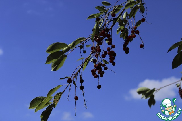 Итак, поехали. Ветка черёмухи на фоне августовского неба.