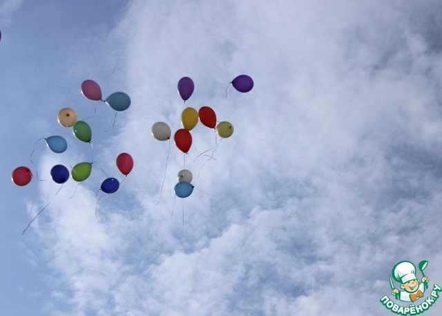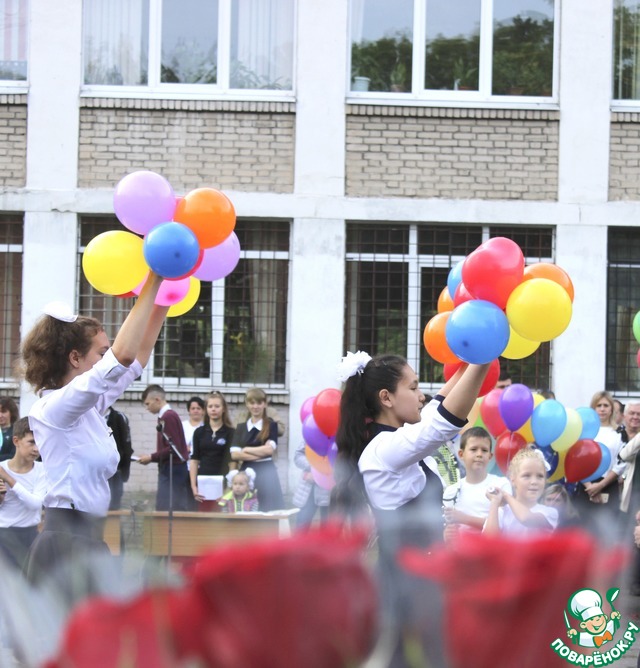 У нас есть традиция: каждый год на линейке 11 класс выпускает шары. Вот они летят.