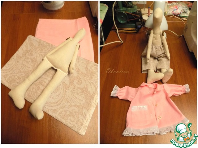 Создаю. Материал: лён, хлопок, набит синтепоном. Рост-35 см. Шапочка, ручки закреплены, поэтому пижамку нельзя снять. Полностью снимаются штанишки, носочки и подушка. Руку можно открепить, тогда его можно раздеть полностью.