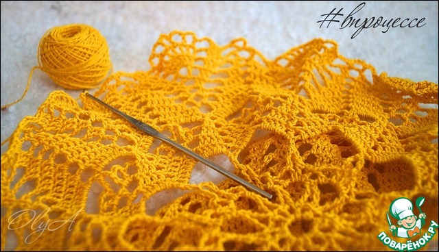 И в мыслях о скором переезде, я решила связать, наконец, салфетку и для себя, в желто-оранжевом цвете. Начала...