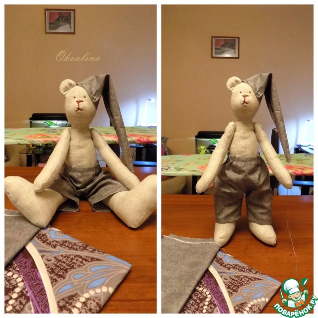 Такой симпатичный Мишка получился, как из мультфильма про Винипуха (не наш мультик). Материал: лён, хлопок 100%. Рост-35 см. Сидит и самостоятельно стоит, можно подвесить на стену. Ручки и ножки подвижны, одежда полностью снимается.