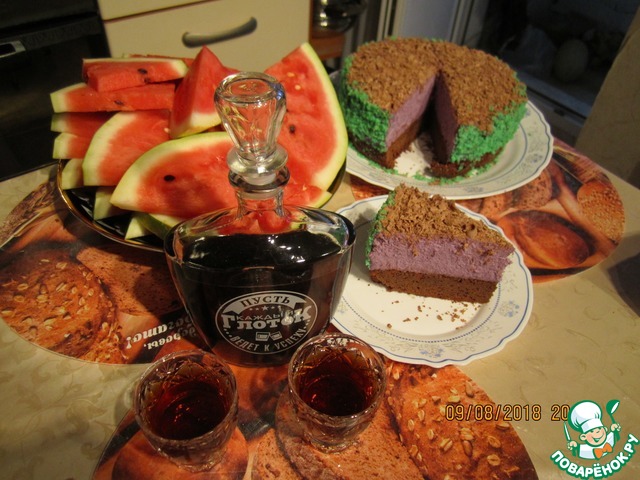 Торт пекла сама (с сюрпризами - зеленое должно было быть фиолетовым, как сам торт, но так как это мой первый опыт с красителями - перепутала цвета, получился ЗЕЛЕНЫЙ