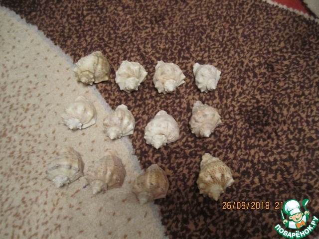 там оказались вот такие великолепные ракушки. Как Тома ты угадала, что у нас дома нет ни одной ракушки, а муж меня упрекал: "Была в Крыму, а не привезла даже одной ракушки". Младший сынок прикладывал их к уху, но так как все орали с этой посылкой, носились и рассматривали содержимое, то шум моря он не расслышал.