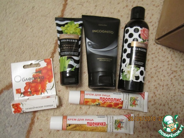 а там россыпь косметики, для поддержания красоты (мужской гель - в центре, забрал к себе старший сын, сказав, что это подарок к его дню рождения).
