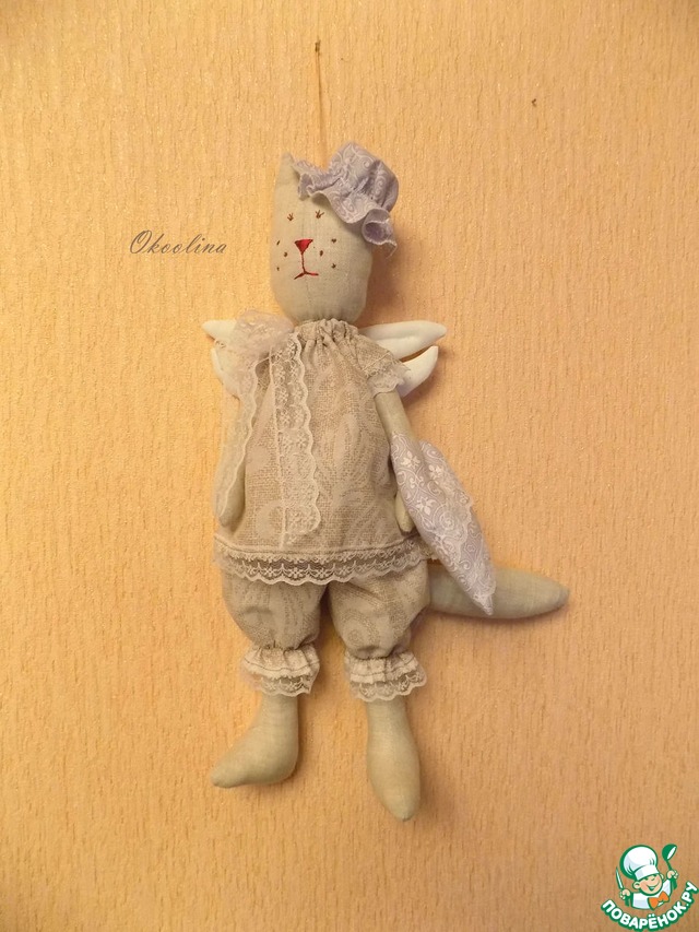 А это Кошка-сплюшка. Сонный Ангел. Я сшила кота, у меня его забрали и попросили кошку ему сшить. Вот такая кошка получилась. Со всеми аксессуарами: крылышками, пижамой и конечно же -подушкой-сердечком.
