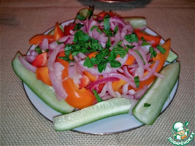 Вкусный яркий салат с приятной кислинкой маринованного лука. Блинчик прекрасно вписался в микс овощей. Мы с подругой не могли остановиться и съели на ужин весь салатник! Спасибо за интересный салат!