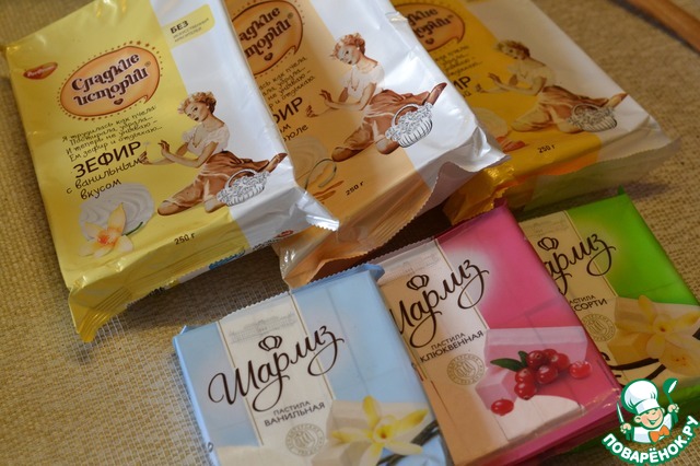 Мой любименький зефир и пастила! Много!!! С разными вкусами! В одной сказке говорили о молочной речке с кисельными берегами. А для меня сказка -это зефирная река с шоколадными берегами! Одной упаковочки уже нет... слопали набегу!!! НЕ переживайте... не слипнется... я по одному кусочку в день!