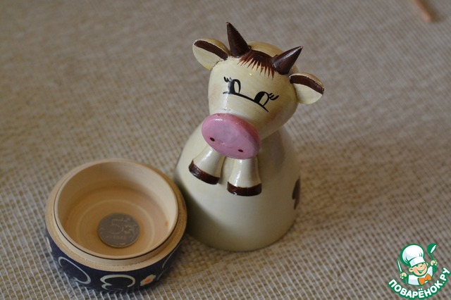 Корова дает невероятно ароматную "Бабушкину соль", которую Машенька сама приготовила и... ДЕНЬГИ! Корова-копилка! 5 рублей у нас уже есть!