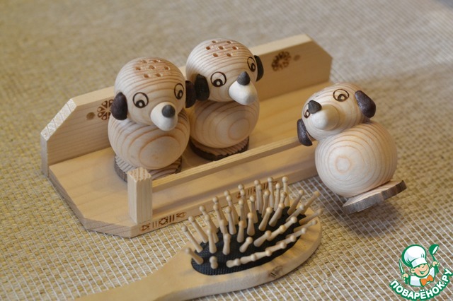 А это набор для специй! Деревянные собачки!!! Умора! И массажная щетка для волос!!