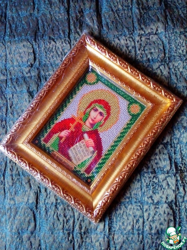 Эту именную иконку она вышила бисером, фото не передает всей красоты