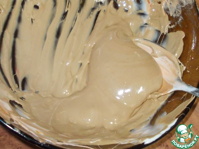 Оранжевый перекладываем в кондитерский мешочек, а в тарелочке делаем коричневый цвет... Для этого смешиваем красный, желтый и капельку синего...