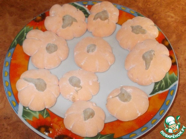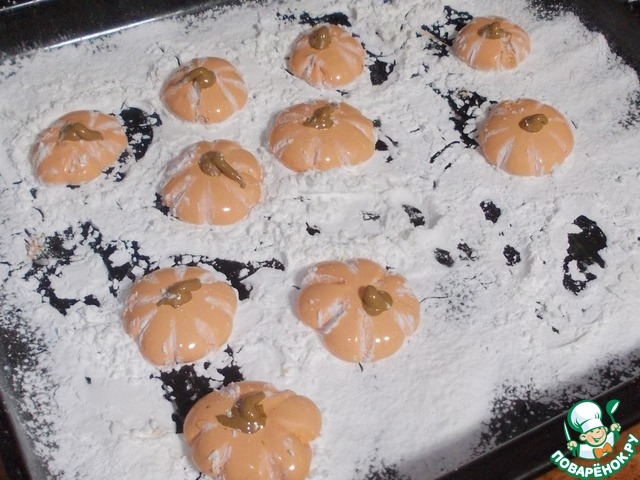 Противень хорошенько присыпаем крахмалом и начинаем ВАЯТЬ)))))... Отсадила я сами тыковки...
