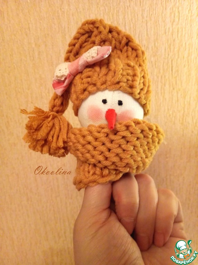 Вот готовая. Тоже в вязанной шапочке. Эту девочку шила просто без заказа.
