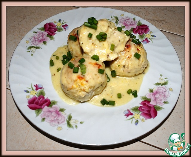 Тефтели из куриного мяса с сыром от Тани obukhov11.Получилось вкусно,но все же не совсем наш рецепт.А вот соус очень даже ничего -замечательный.