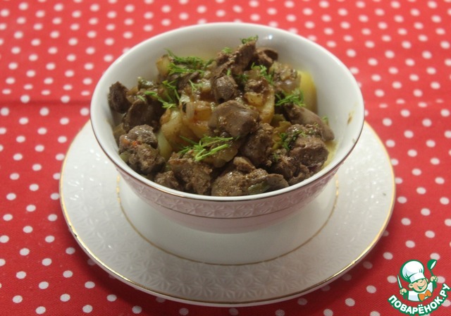 Куриная печень с маринованными огурцами по рецепту Катюши kotenochkin https://www.povarenok.ru/recipes/show/145596/