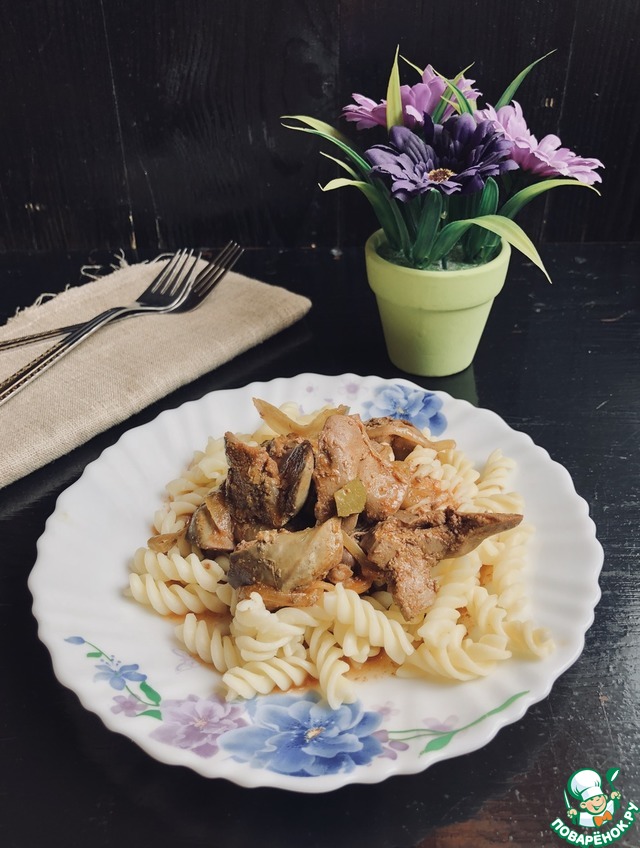 Очень вкусная печенка. И нежная, и яркая на вкус, насыщенная. У меня вместо томат пасты домашний сацебели.