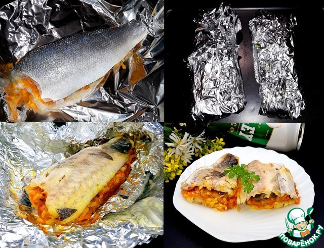 Вкусная, сочная и ароматная рыба! У меня филе окуня. Начинка - морковь, лук.