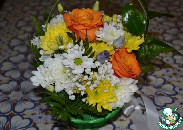 Сказала, чтобы я вышла во двор. Выхожу - сюрприз! Передают мне корзиночку с шикарным букетиком цветов!