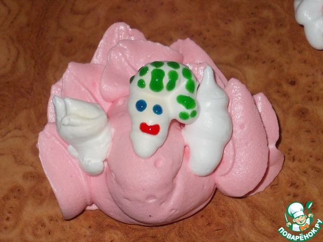 Из остатков розового крема я планировала сделать страуса... Почему именно страус? Да, кто ж его знает!!! Рука так легла... Но голова страуса (не смотря на ее маленький размер) не захотела держаться на тонкой шее и прилегла... Вышел не совсем страус, а скорее Бракодяка №2!