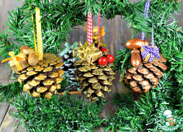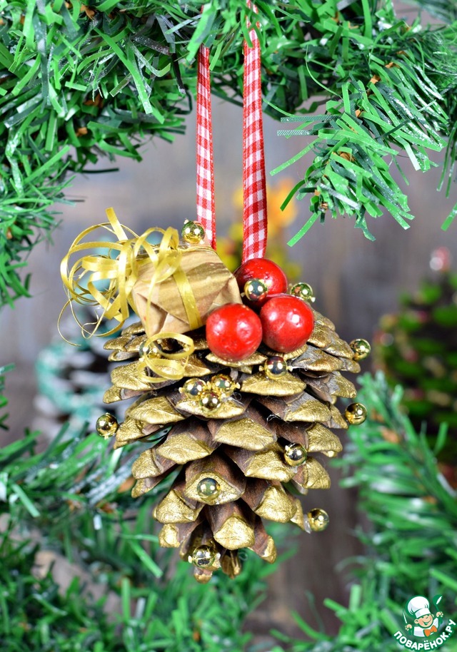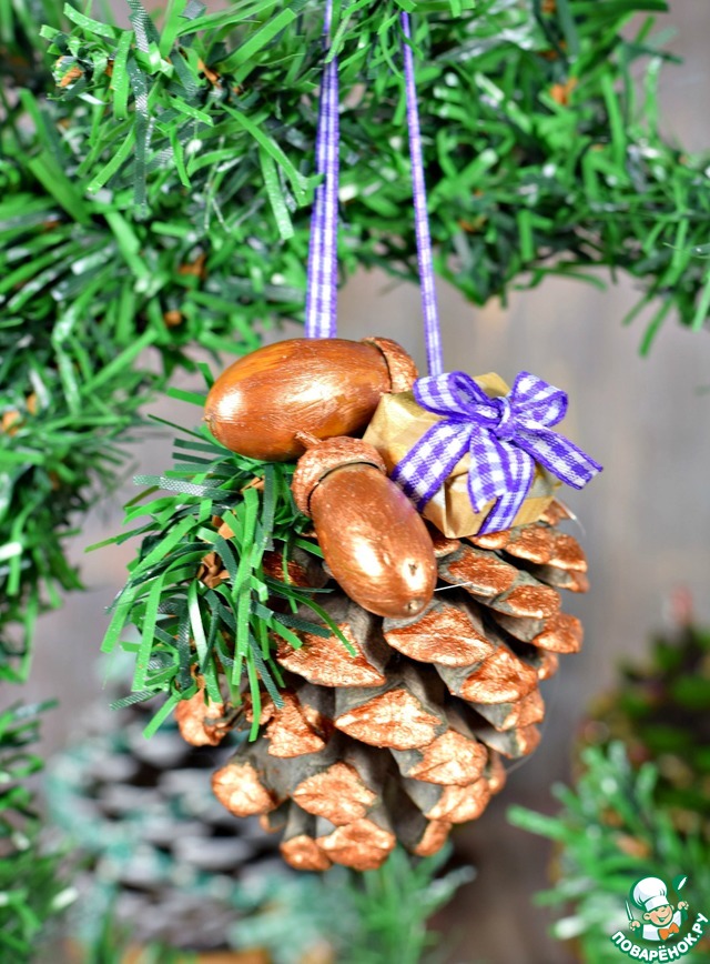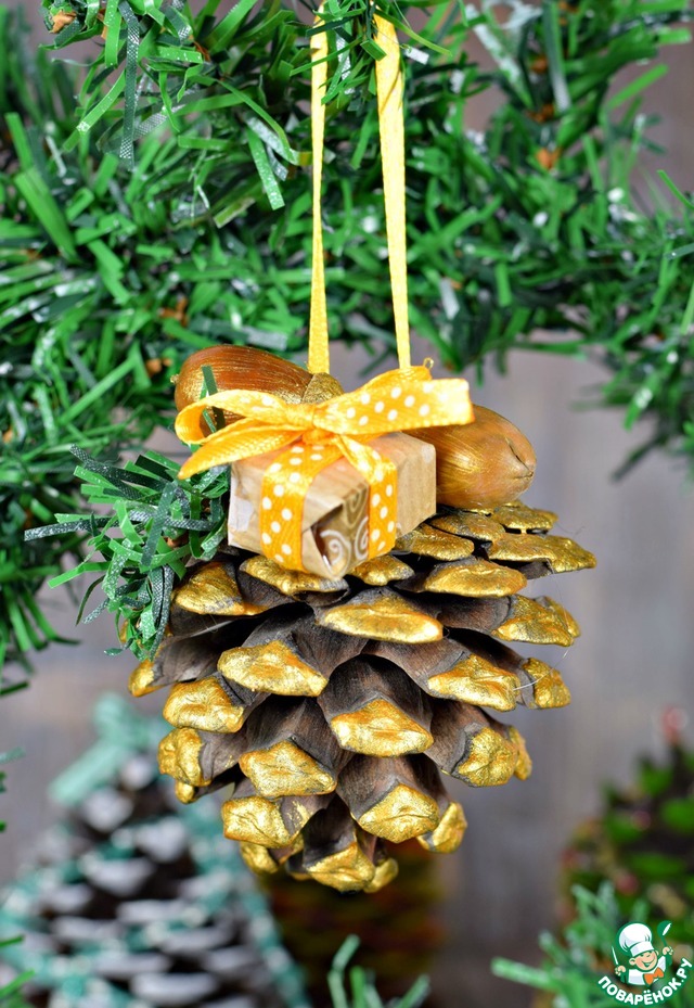 Следующее украшение - шишка, которую можно повесть на елку. Тут все очень просто!