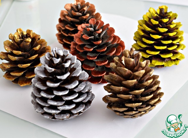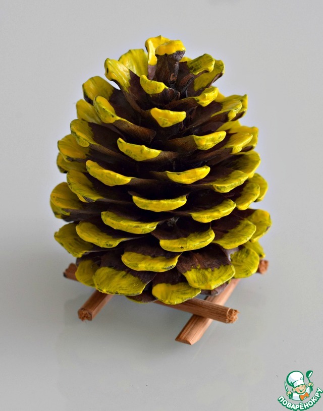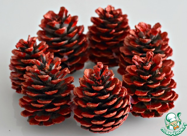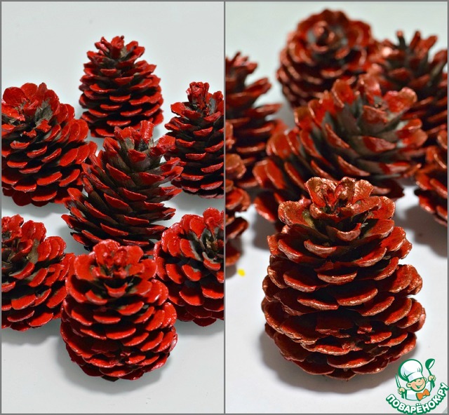 Шишку покрасим акриловой краской в любой цвет, что вам нравится. Красим и снаружи, и изнутри.