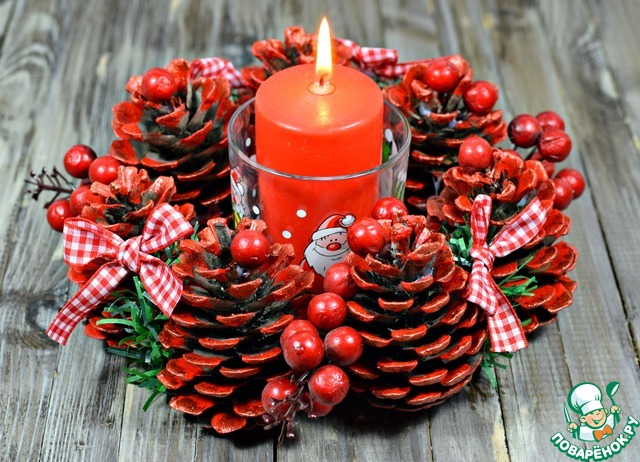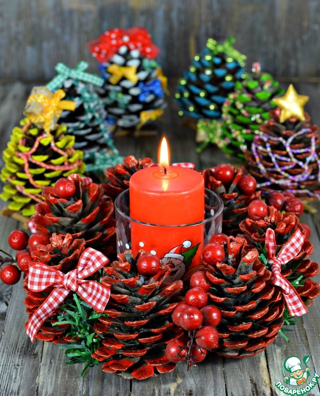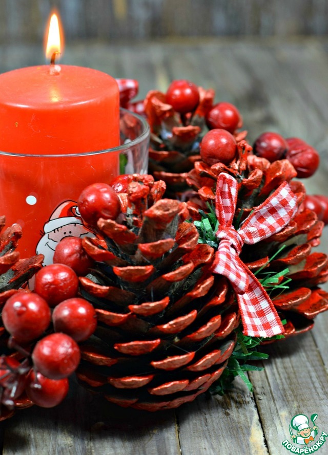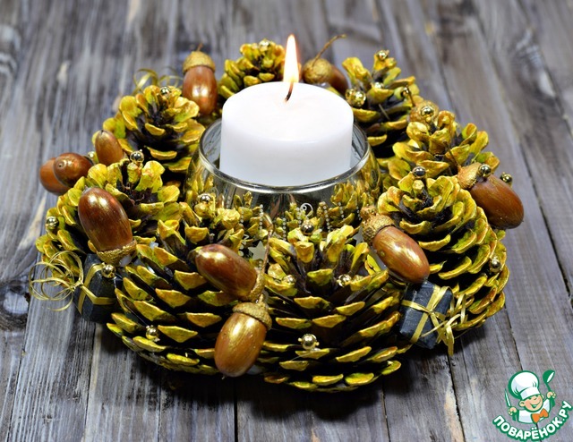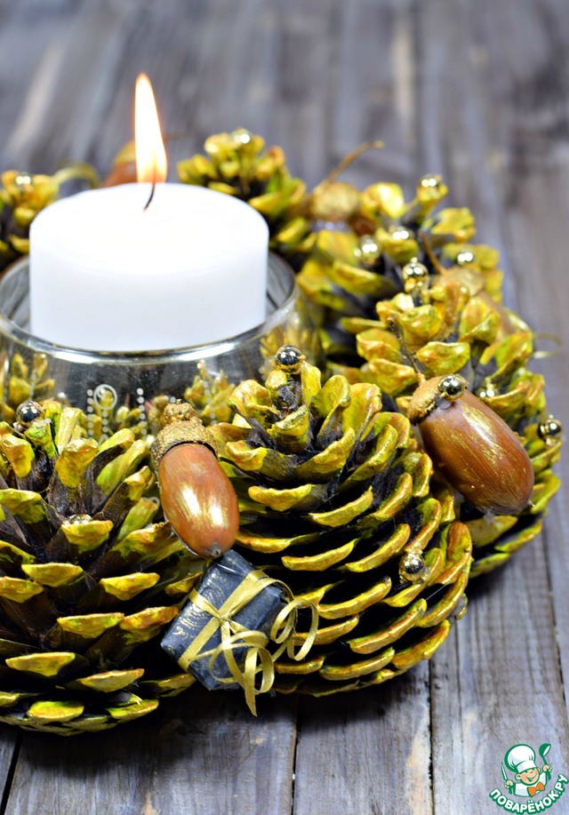 А можно сделать подсвечник из шишек. Тут огромный простор для фантазии.